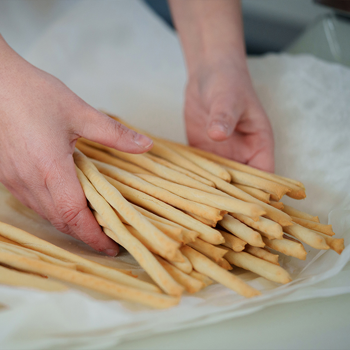 »Rustici« sind die handgedrehte, etwas edlere Form von Grissini und zeichnen sich durch ihren lockeren und knusprigen Teig aus. Diese Spezialität wird aus bestem italienischen Weizenmehl, nativem Olivenöl und feinem Meersalz hergestellt. Die traditionelle Zubereitung und die Verwendung hochwertiger Zutaten machen sie zu einem besonderen Snack, der perfekt zu mediterranen Speisen passt. Ob als Beilage zu einer Käseplatte, zu Oliven oder einfach pur - »Rustici« sind ein Genuss, der den italienischen Geschmack auf authentische Weise einfängt.