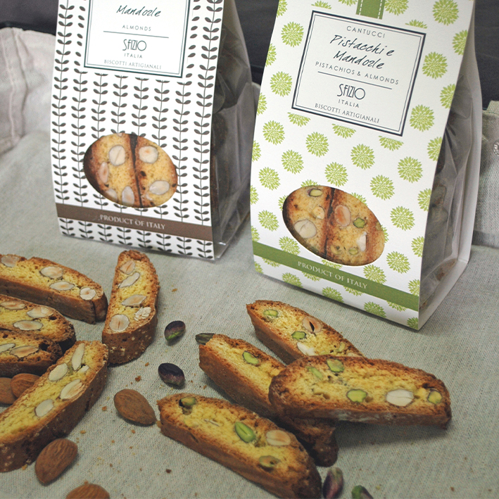 Diese Cantucci werden mit italienischem Weizen und 23 % selbst gerösteten, aromatischen Mandeln aus Italien zubereitet. Die Verwendung frischer Eier und regionaler Zutaten verleiht diesen traditionellen Keksen ihre außergewöhnliche Knusprigkeit und den authentischen Geschmack. Perfekt als Begleiter zu Kaffee oder einem Glas Vin Santo.