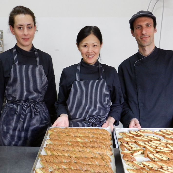 Krosse Cantucci aus italienischem Weizen, verfeinert mit 12 % Bitterschokolade und 10 % kandierten Zitronenschalen. Diese Cantucci werden mit frischen Eiern und Butter aus der Region gebacken, was ihnen ihre unverwechselbare Knusprigkeit und den intensiven Geschmack verleiht. Eine perfekte Kombination aus Schokolade und Zitrusfrische für einen besonderen Genussmoment.