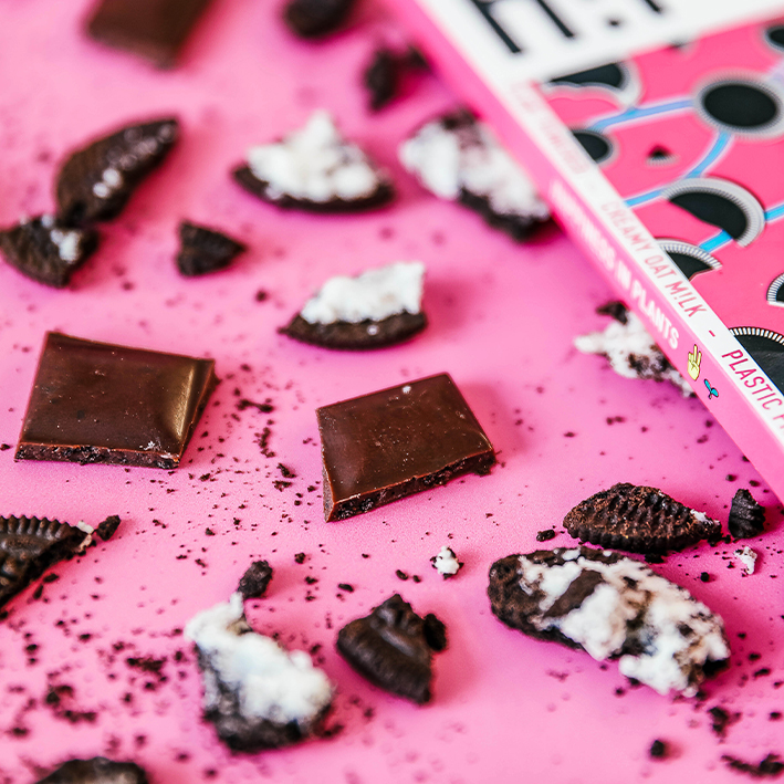 Hochwertiger kolumbianischer Kakao (41 %) trifft auf die cremige Haferbasis und knusprige Cookies. Diese vegane Schokolade überzeugt durch ihre sanfte Süße und den vollmundigen Geschmack, der durch die Kombination mit Hafer besonders harmonisch wird. Verpackt in einer umweltfreundlichen, plastikfreien Hülle, ist sie nicht nur ein Genuss für den Gaumen, sondern auch eine bewusste Wahl für die Umwelt.