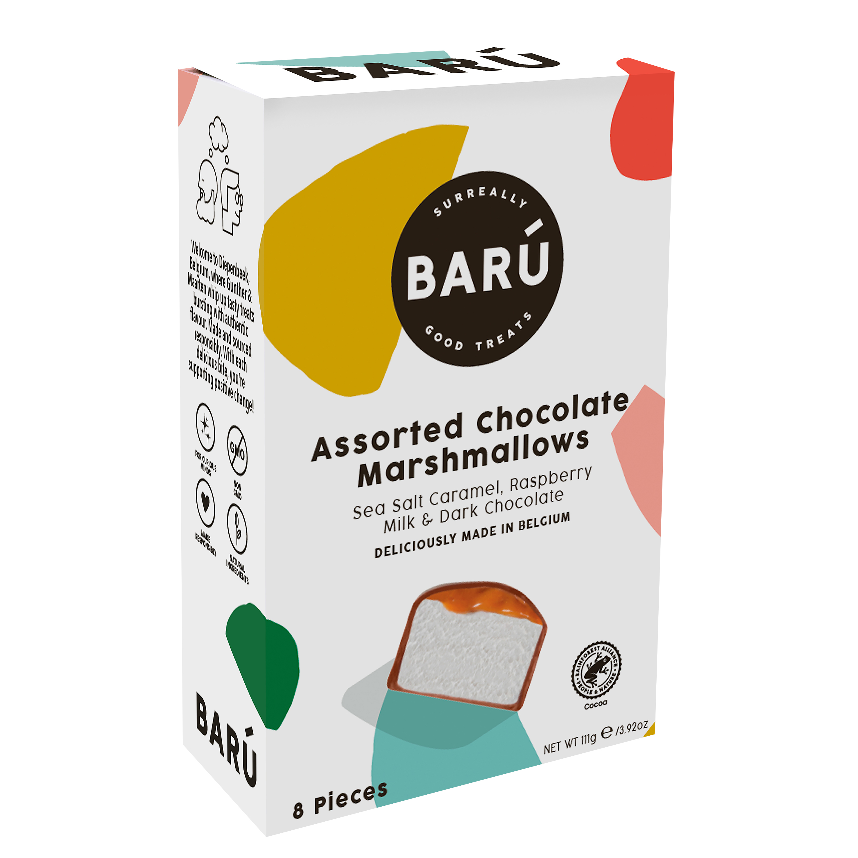 Die gemischte Packung enthält eine köstliche Auswahl von vier schokolierten Marshmallows: Milch, Zartbitter, Meersalz-Karamell und Kaffee-Ganache. Jede Variante bietet ein einzigartiges Geschmackserlebnis, das die zarte Konsistenz des Marshmallows perfekt mit den intensiven Noten der Schokolade verbindet. Ideal als süßer Snack oder als Geschenk für Schokoladenliebhaber.