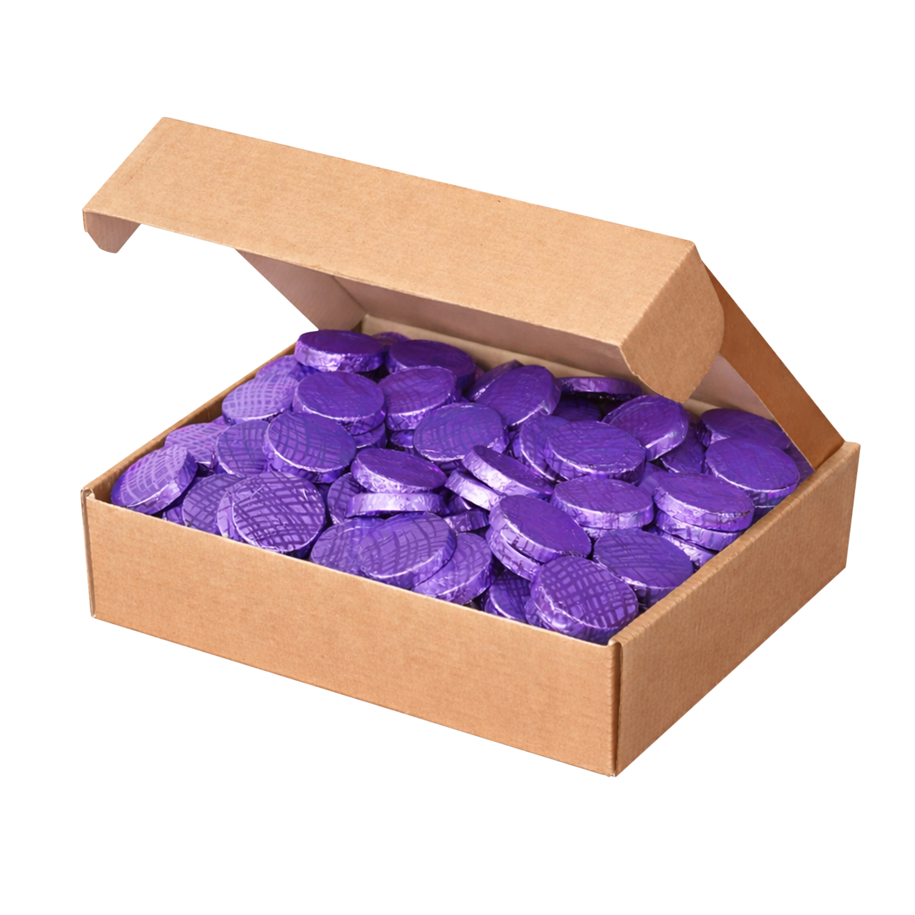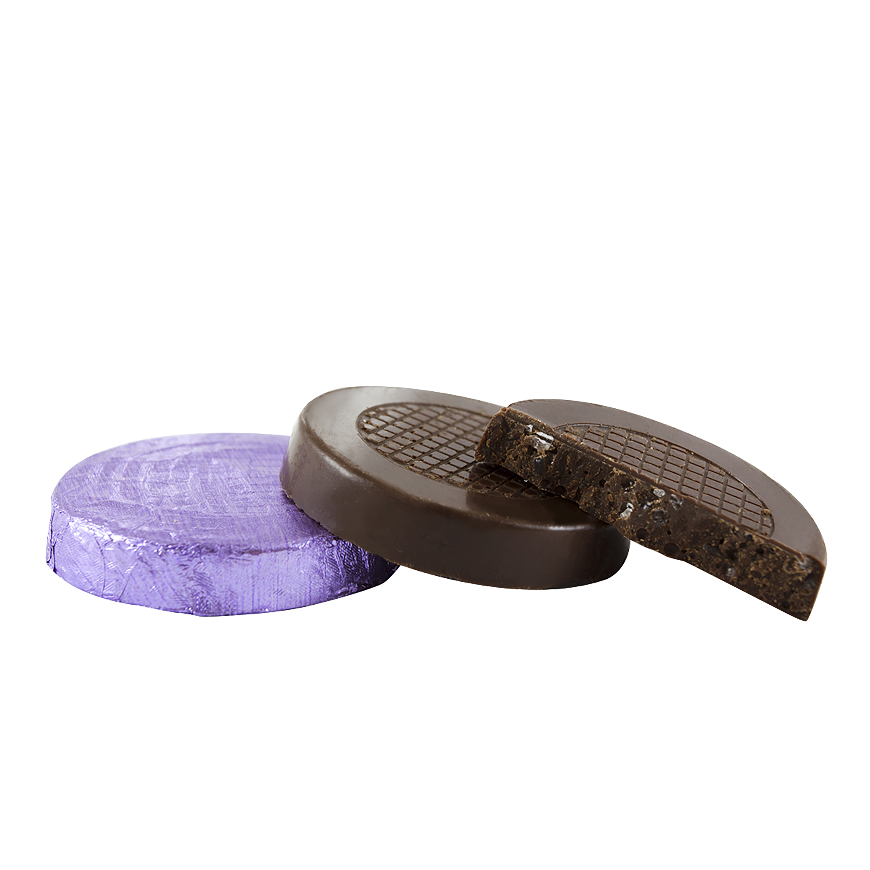 Einzeln in Staniol verpackte Taler, umhüllt von edler Zartbitterschokolade mit einem Kakaoanteil von 70 %, die für ein ausgewogen kräftiges, feinherbes Aroma sorgt. Die Kartons enthalten zusätzlich einen kleinen, passenden Aufsteller mit den wichtigsten Produktinformationen und Inhaltsstoffen, sodass sich die Taler direkt für den Einzelverkauf und eine ansprechende Präsentation am Point of Sale eignen.