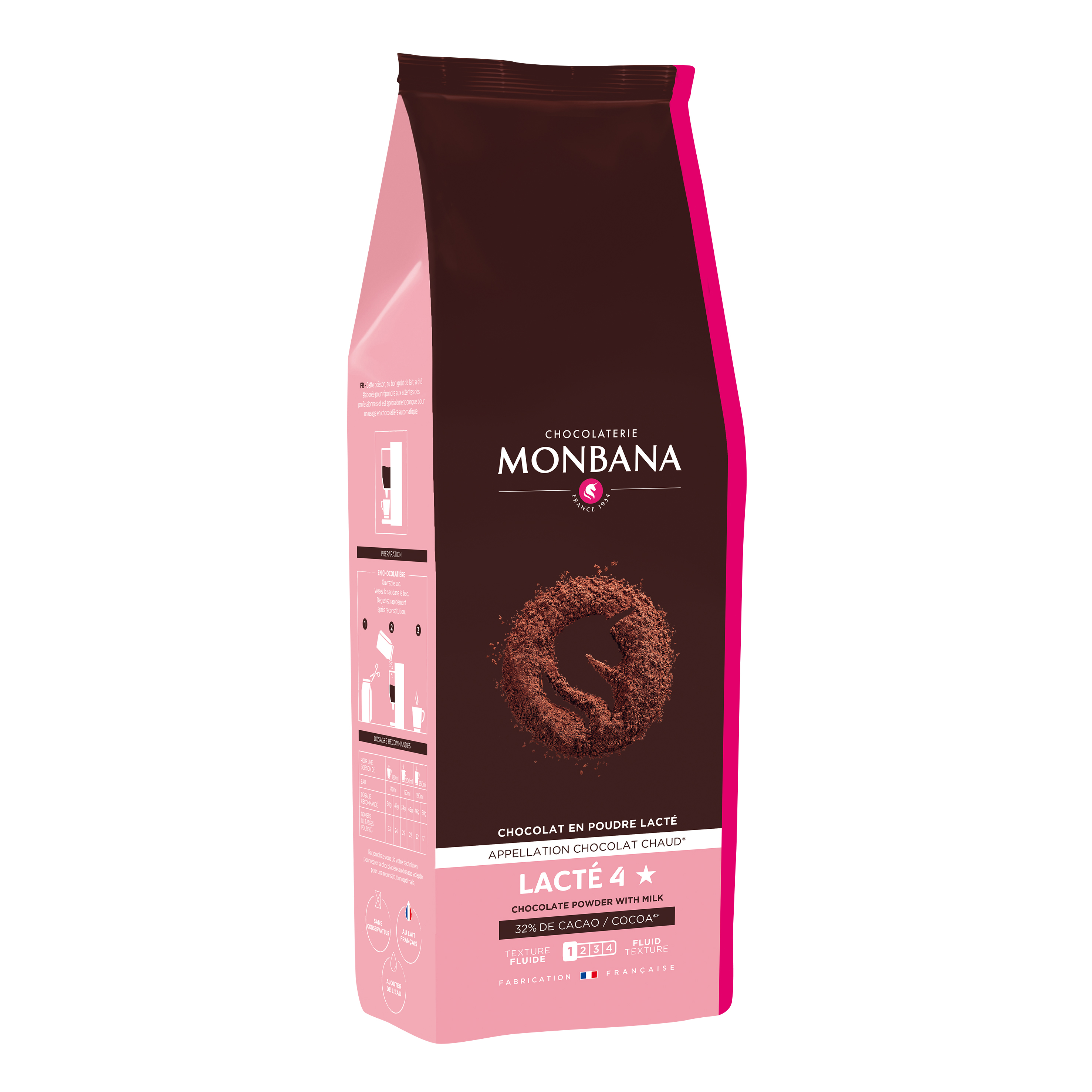Dieses rieselfähige, wasserlösliche Schokoladenpulver für Vollautomaten enthält 59,4 % Schokoladenpulver, davon 32 % Kakao. Perfekt für die schnelle Zubereitung von cremigen und vollen Schokoladengetränken.