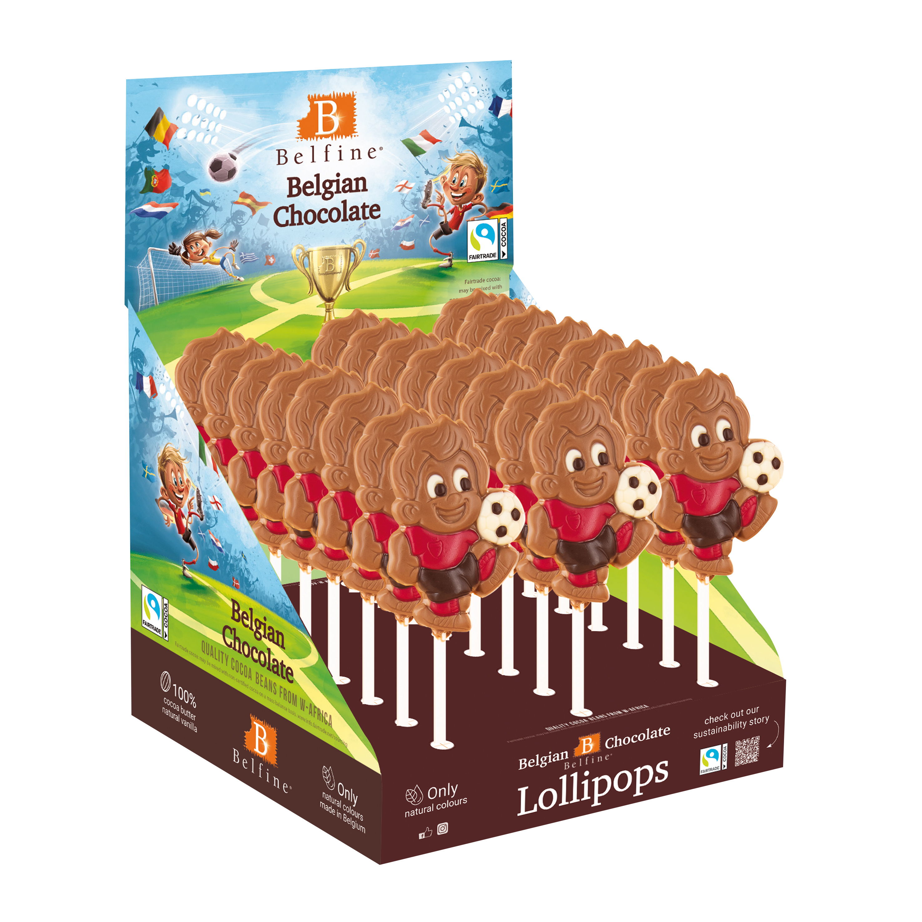 Der Schoko-Fußballspieler bringt nicht nur Kinderaugen zum Leuchten, sondern sorgt auch auf jeder Party, im Pausenhof oder als kleine Aufmerksamkeit für Begeisterung. Die bunte Figur aus feiner Schokolade kombiniert leckeren Geschmack mit spielerischem Design – ideal für kleine Fußballfans.