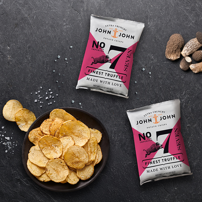 Die neue Sorte besticht mit dem unverwechselbaren Geschmack echter Sommertrüffel, kombiniert mit grobem Meersalz und ganz ohne Hefeextrakt. Diese 100 % natürliche, vegane und glutenfreie Mischung bringt ein intensives Trüffelaroma auf Ihren Snackteller. John & John Crisps bereichern jedes Angebot mit ihrem hochwertigen, exquisiten Geschmack, der das Beste der Natur vereint.