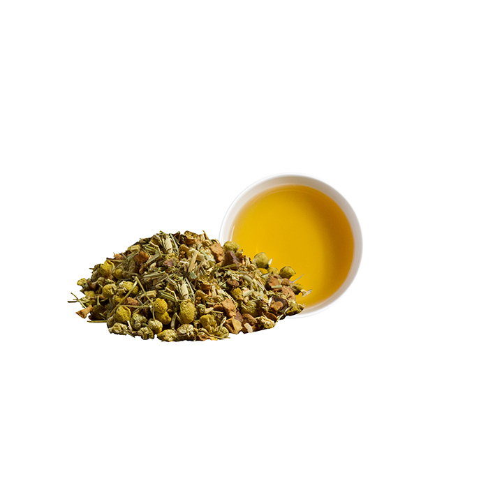 Bio Apfelstücke, Bio Kamille, Bio Zitronengras, Bio Ingwer, Bio Fenchel, Bio Süßholzwurzel, Bio Zitronenverbene.