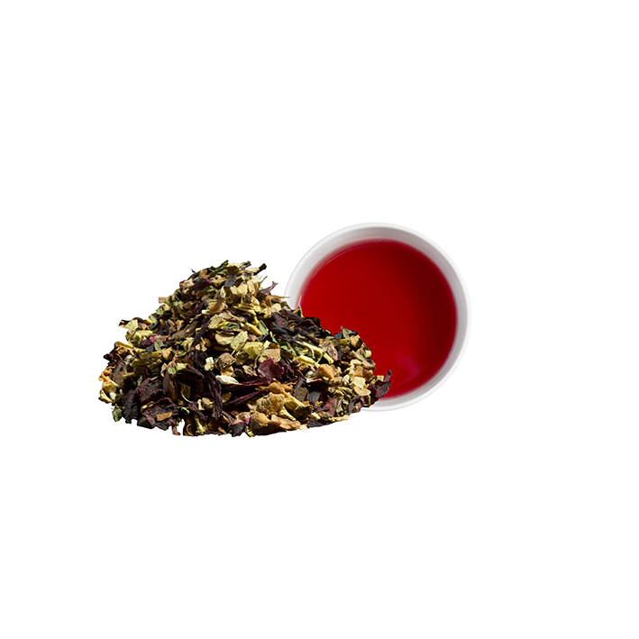 Hibiskus*, Süßholzwurzel*1, Ingwer*, Zimt*, rote Bete*, Apfelstücke*, Krauseminze*, Limone*, schwarzer Pfeffer*, Gewürznelke*, Kardamomsaat*. *Aus kontrolliert biologischem Anbau; 1Enthält Süßholz - bei hohem Blutdruck sollte ein übermäßiger Verzehr dieses Erzeugnisses vermieden werden.