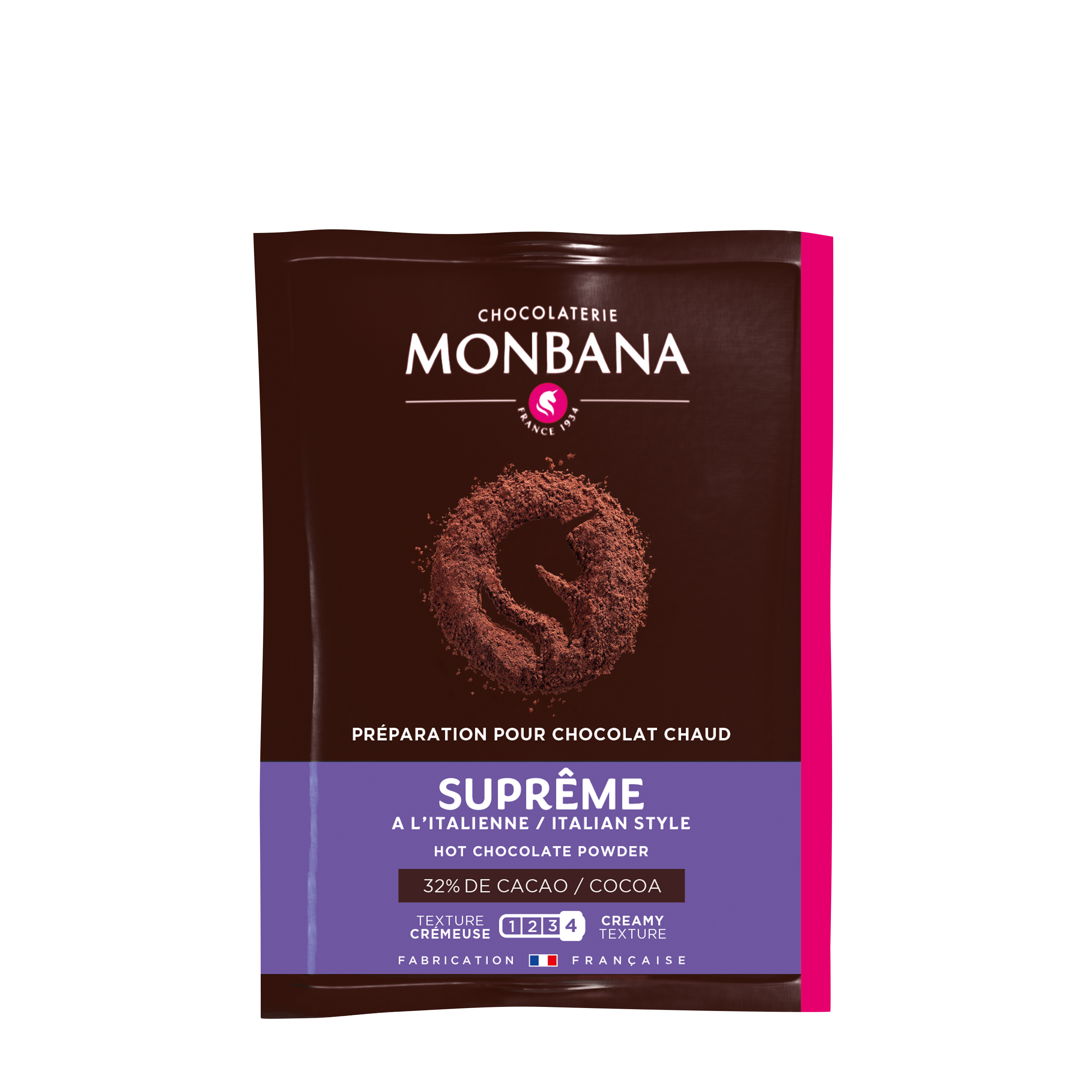 Eine dickflüssige, cremige Trinkschokolade (32 %) italienischer Art, die dank Maisstärke ihre unverwechselbare Textur erhält. Diese besondere Rezeptur ergibt eine samtige Schokoladencreme, die sich ideal für gemütliche Genussmomente eignet. Erhältlich im praktischen Sachet.