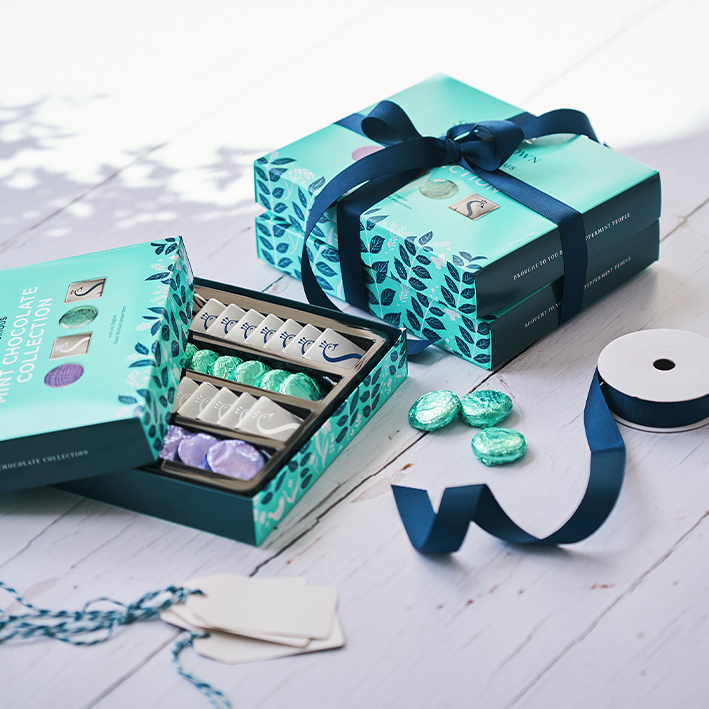 Eine mintige Mischung der besten Mintprodukte in einer stilvollen Box. Von Minz-Napolitains in Milch- und Zartbitterschokolade bis hin zu erfrischenden Fondanttaler und Zartbittertalern mit Zuckercrisps - diese Box vereint alles, was Minz-Liebhaber begehren. Ideal als Geschenk oder um sich selbst einen erfrischenden Genussmoment zu gönnen.