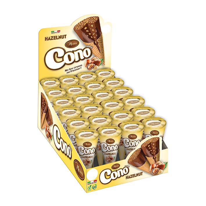 Das knusprige Waffelhörnchen mit zartschmelzender Gianduja-Creme und kleinen Schokoladenraspeln ist ein wahrer Genuss für Schokoladenliebhaber. Abgerundet wird diese süße Verführung durch knackige Cerealienstückchen, die für einen spannenden Biss sorgen. Ideal als kleine süße Auszeit oder als Begleitung zu einem leckeren Heißgetränk.