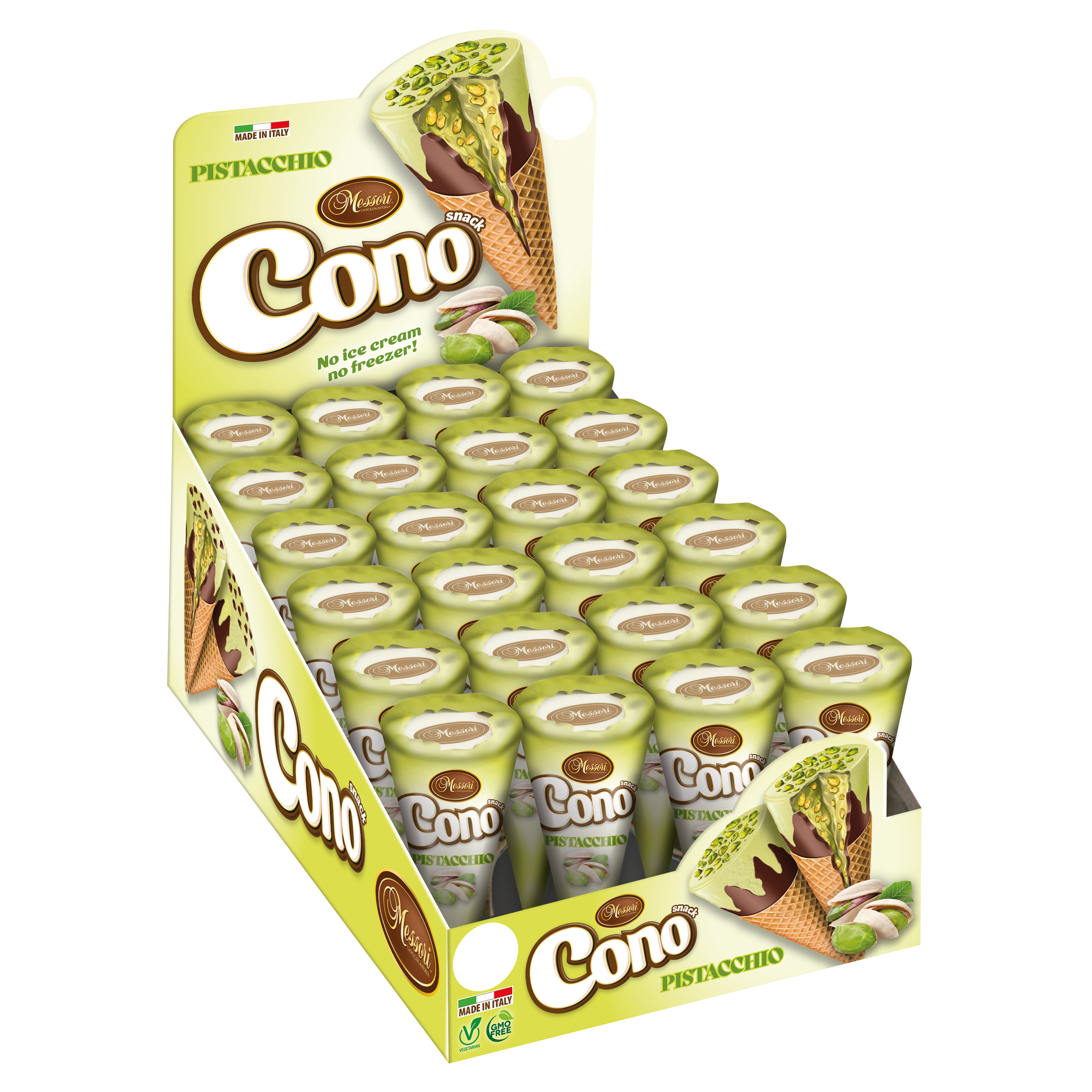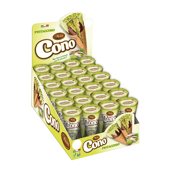 Ein knuspriges Waffelhörnchen gefüllt mit zartschmelzender Pistaziencreme, veredelt mit dunklen Schokoladensplittern und knusprigem Puffreis. Diese köstliche Kombination vereint cremige, nussige Noten mit der tiefen Aromatik dunkler Schokolade und der leichten Knusprigkeit des Puffreises - ein perfekter Genuss für wahre Naschkatzen. Ideal für den kleinen süßen Moment zwischendurch oder als Highlight zum Nachmittagskaffee.